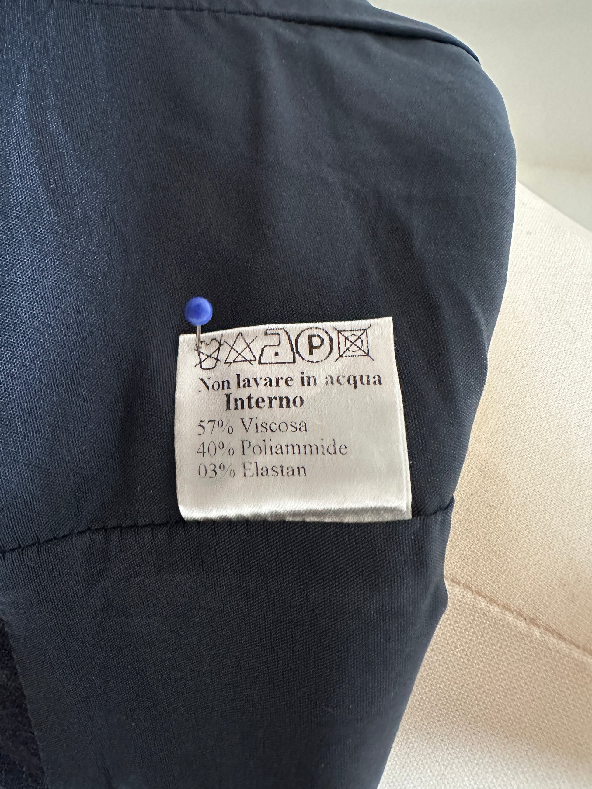 Composizione: 98% lana e 2% elastan, fodera in 57% viscosa, 40% poliammide e 3% elastan