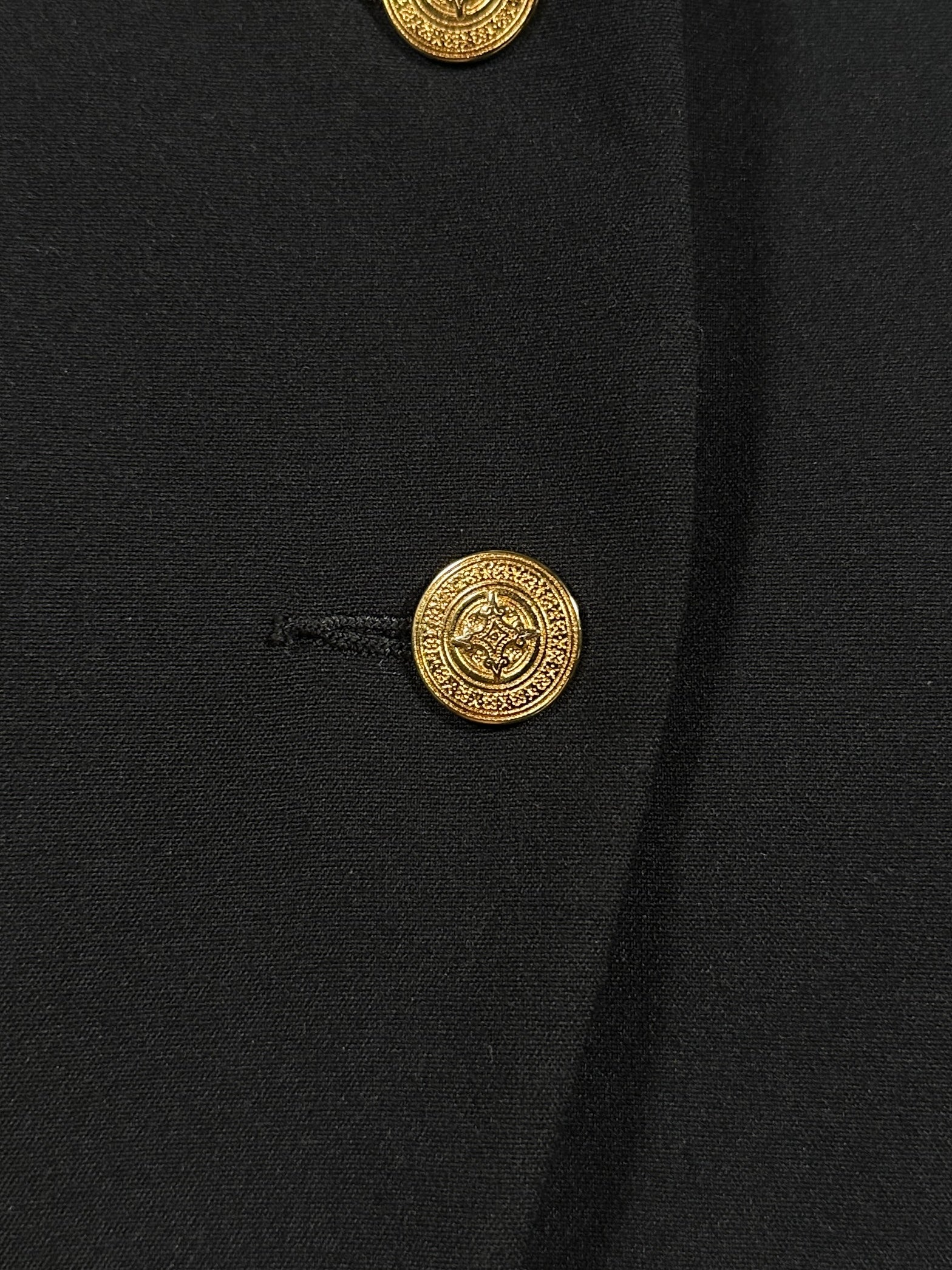 - Chiusura monopetto con 4 bottoni dorati, stupendo il dettaglio dei bottoni che delimitano il colletto