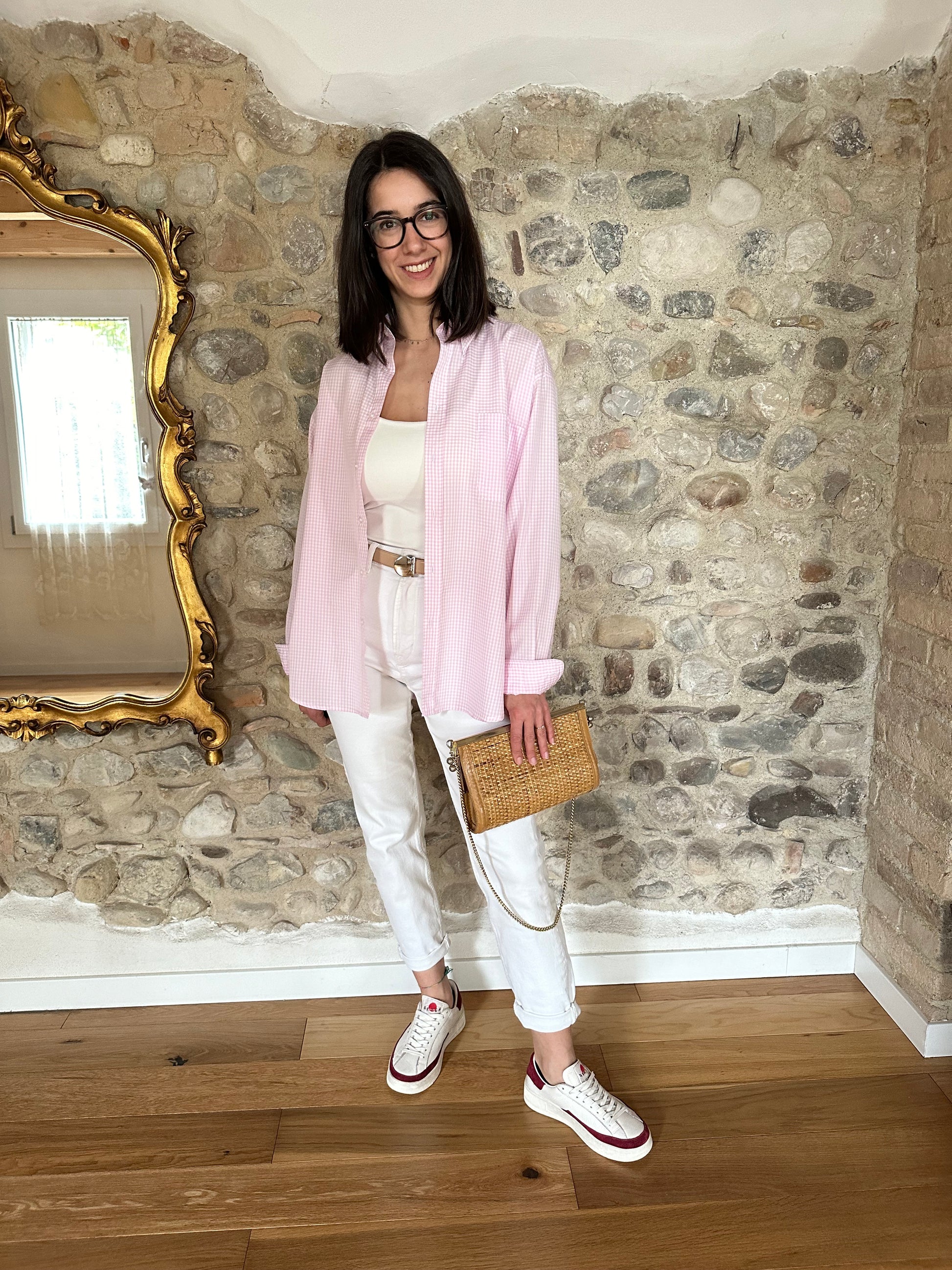 Camicia Anni Novanta Vichy Bianco e Rosa Tg.46/48