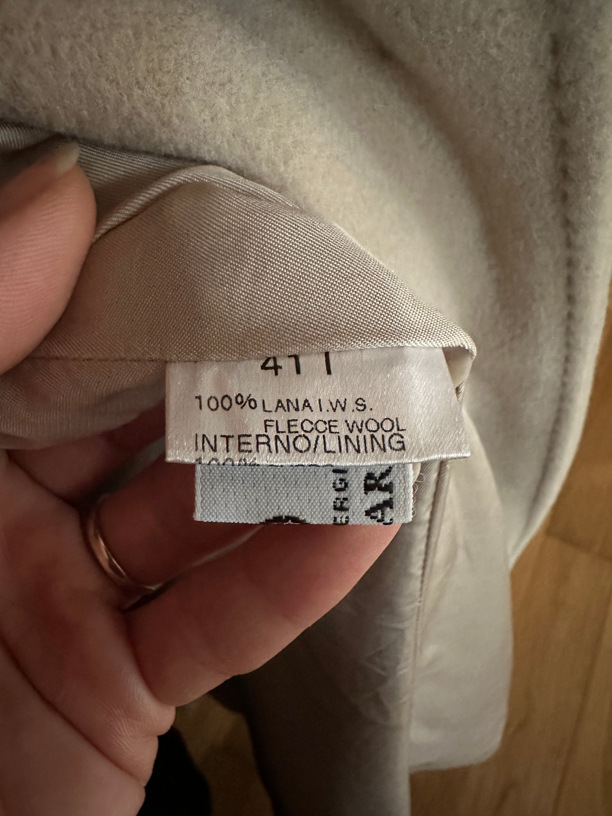 Composizione: 100% pura lana vergine Woolmark, fodera in 100% cupro
