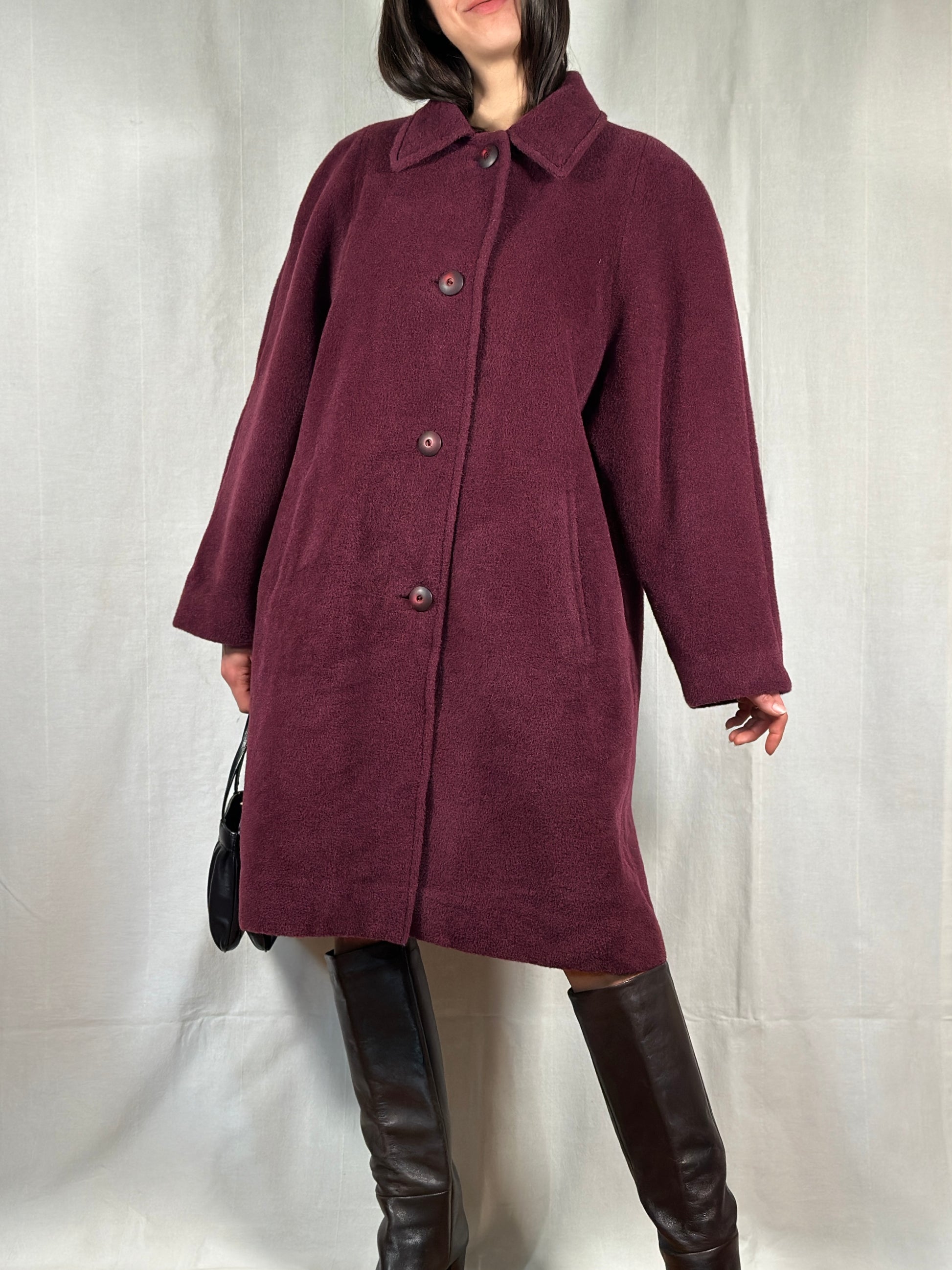 Cappotto Vintage Anni ‘80 in Alpaca, Mohair e Lana Color Vinaccia