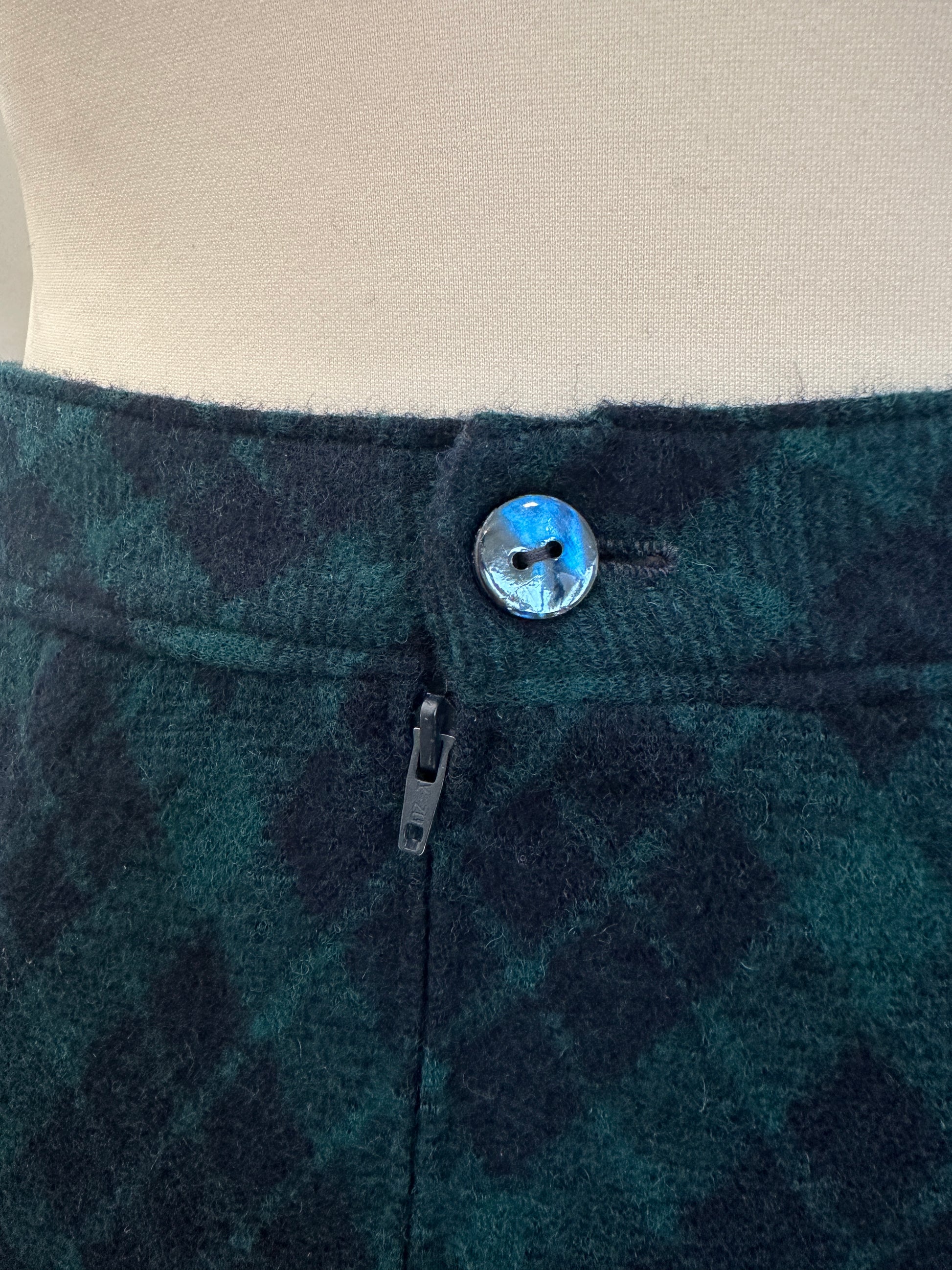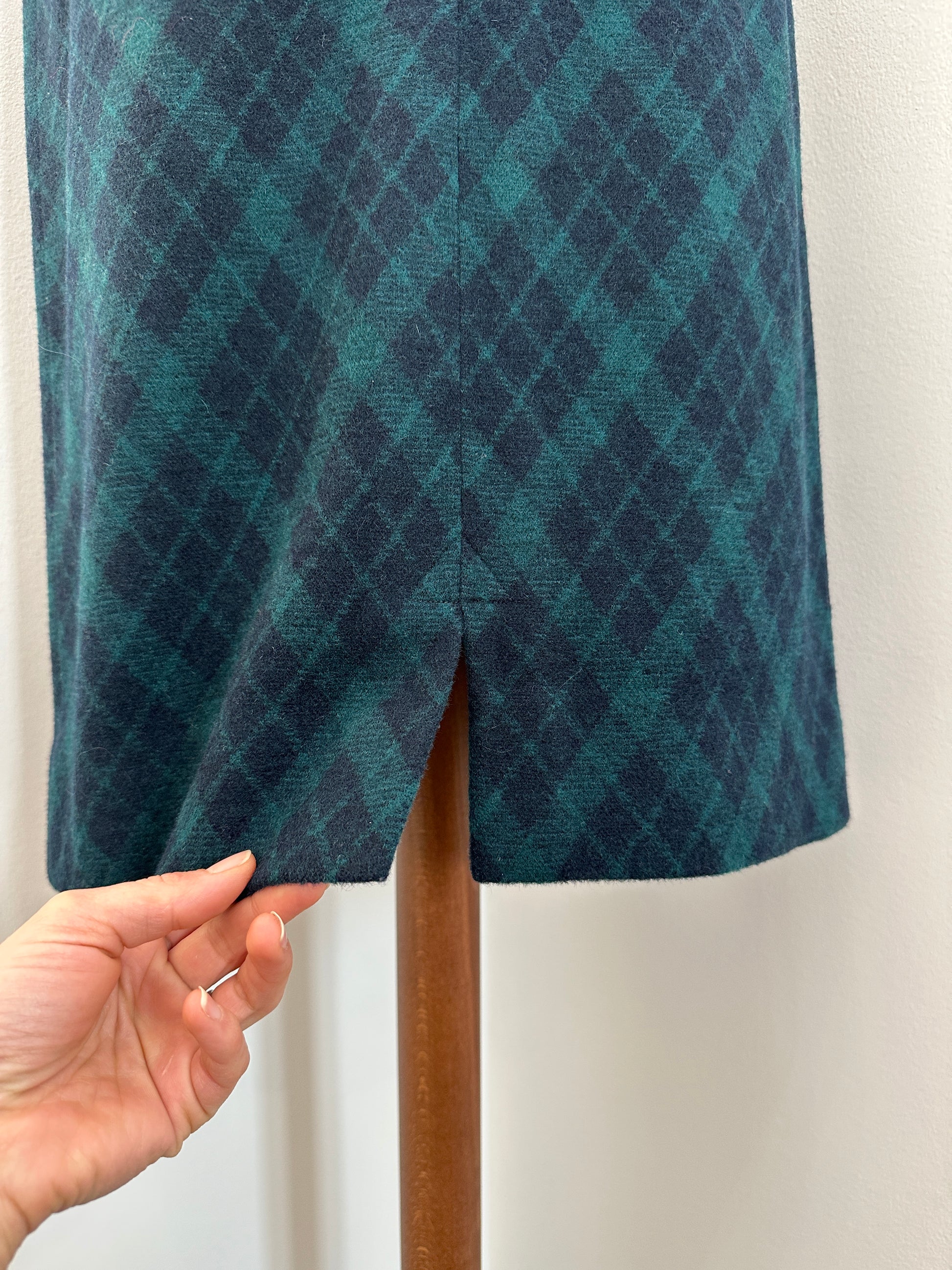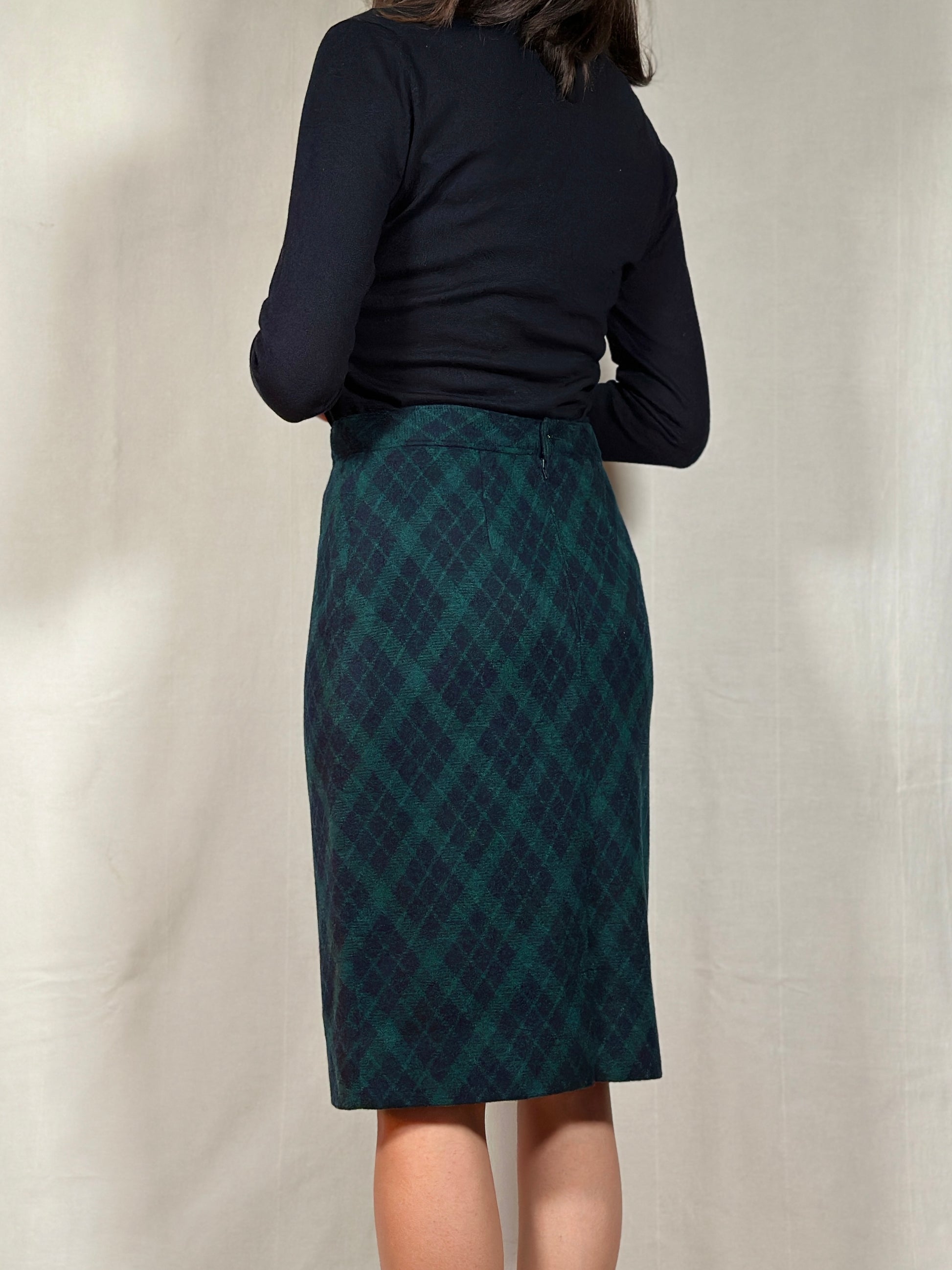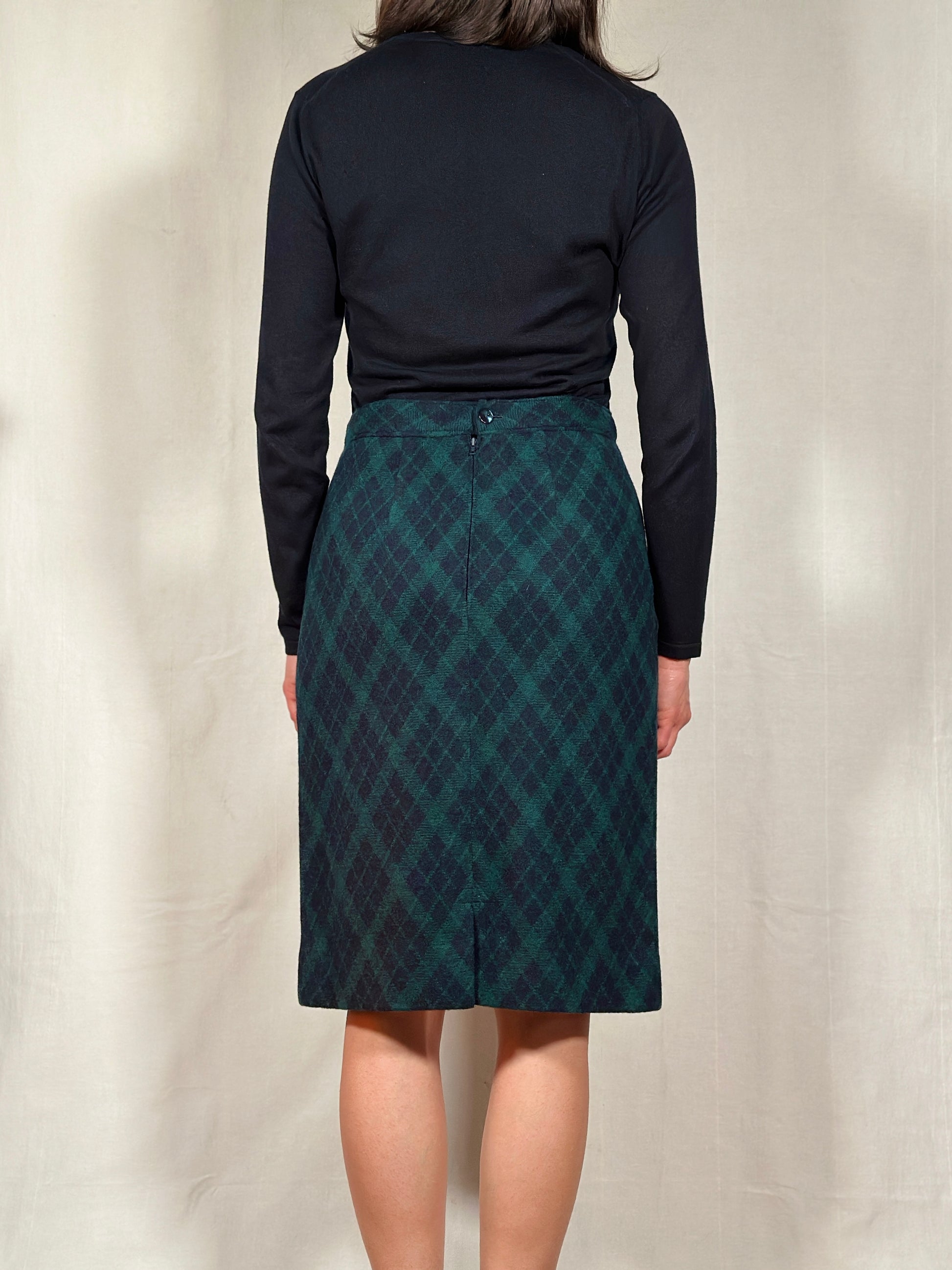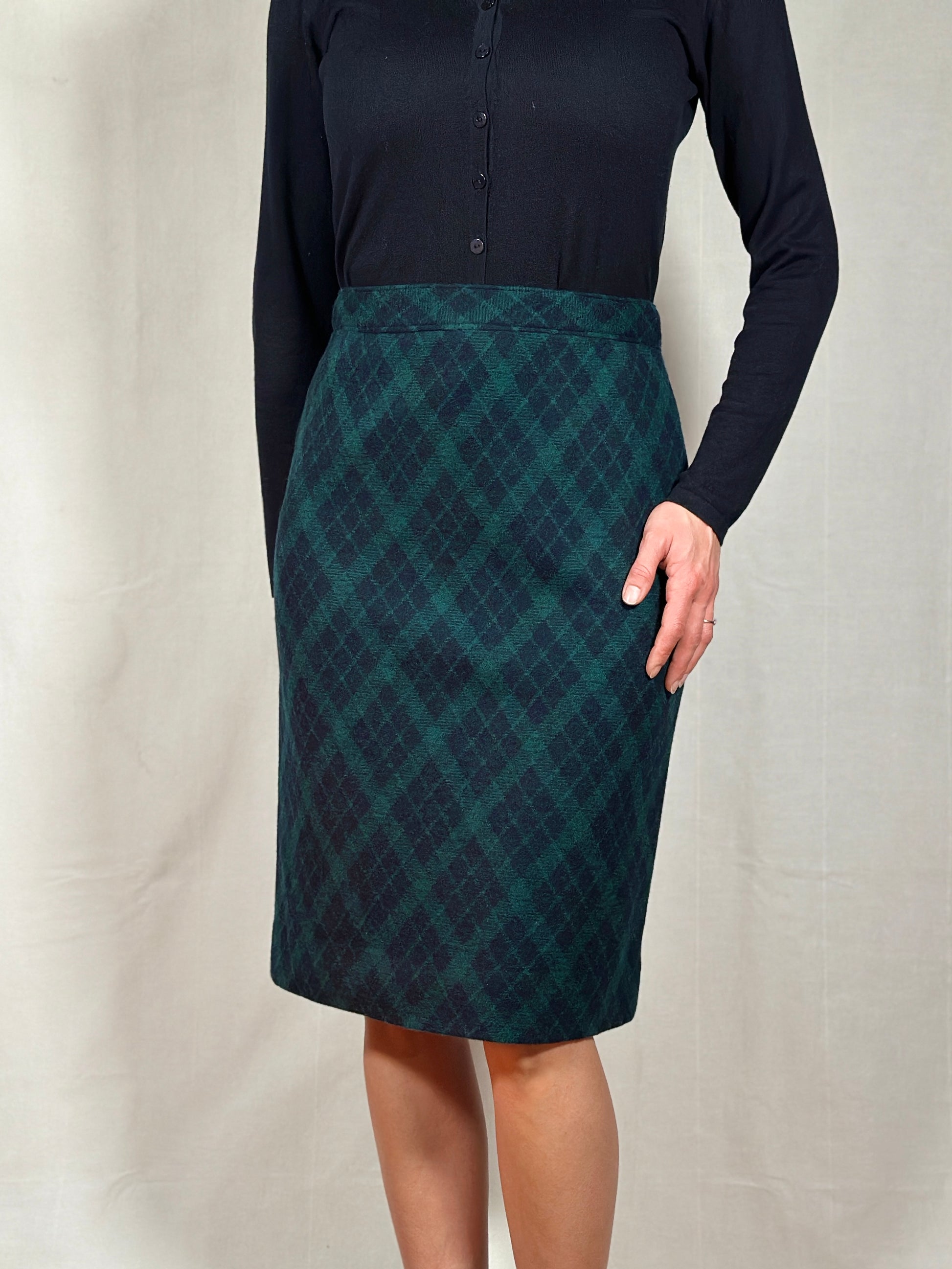 Gonna Tubino Anni ‘80 in Lana Verde a Rombi Blu