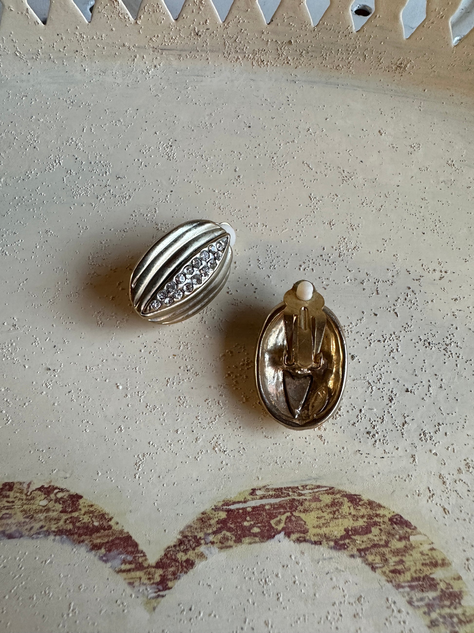 Orecchini Anni ‘70/‘80 a Clip Dorati con Brillantini